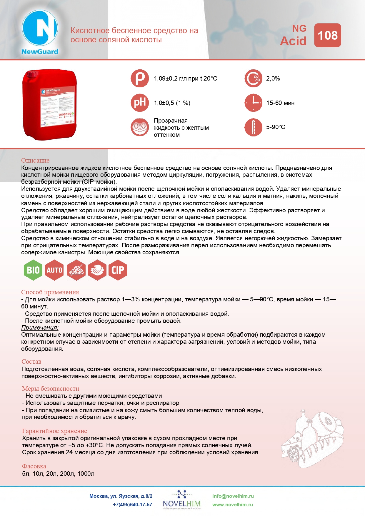 - Средство применяется после щелочной мойки и ополаскивания водой.