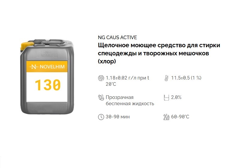 130 NG Caus Active Щелочное моющее средство для стирки творожных мешочков (хлор). Канистра 5л.