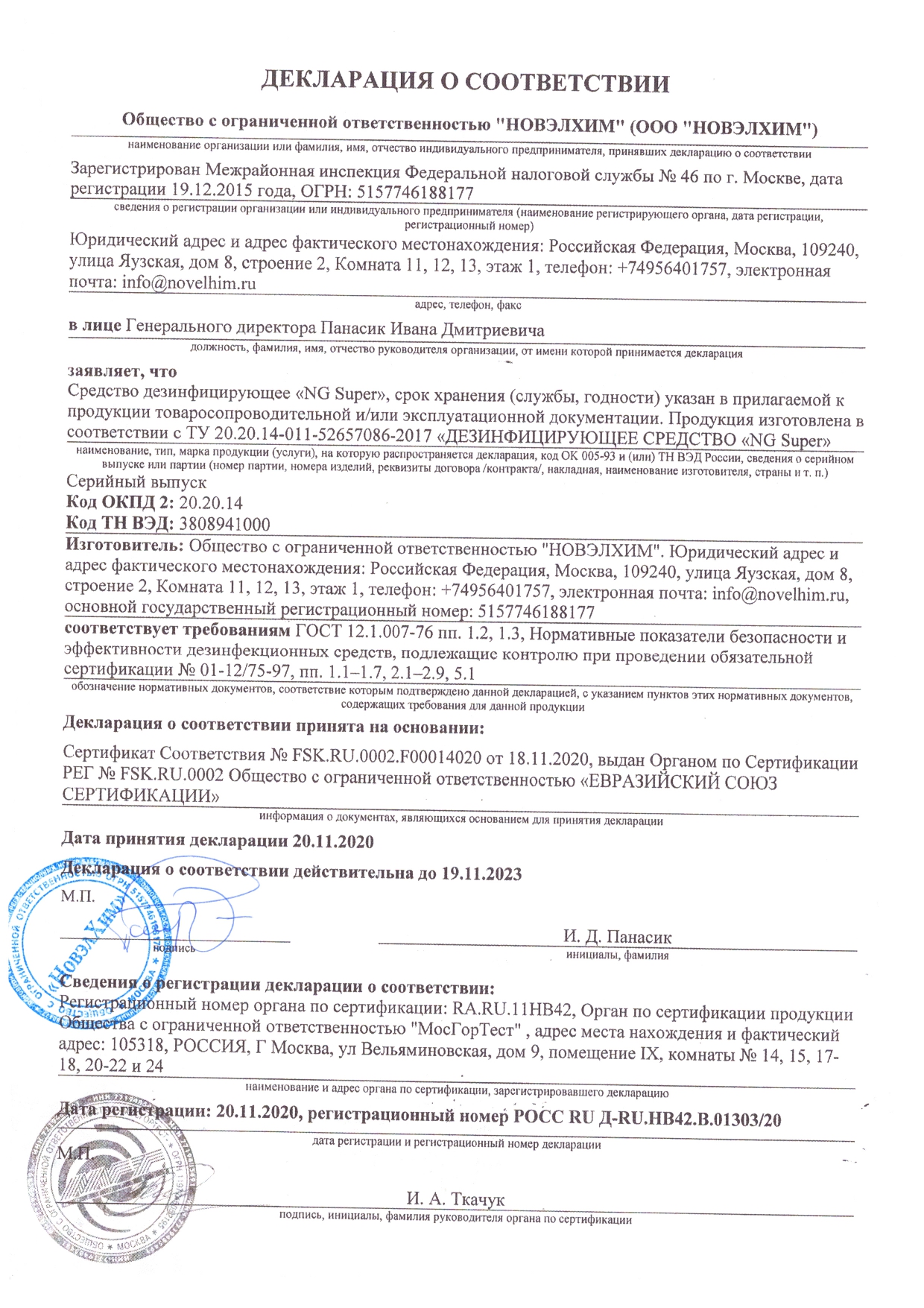 142 NG Super Нейтральное дезинфицирующие средство (ЧАС/Глутаровый альдегид). Канистра 10л.