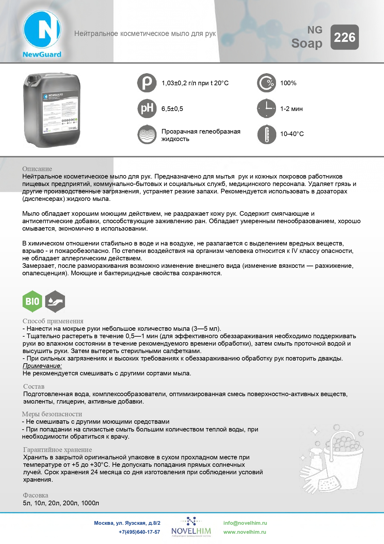 Нейтральное косметическое мыло для рук. Предназначено для мытья рук и кожных покровов работников пищевых предприятий, коммунально-бытовых и социальных служб, медицинского персонала. Удаляет грязь и другие производственные загрязнения, устраняет резкие запахи. Рекомендуется использовать в дозаторах (диспенсерах) жидкого мыла.