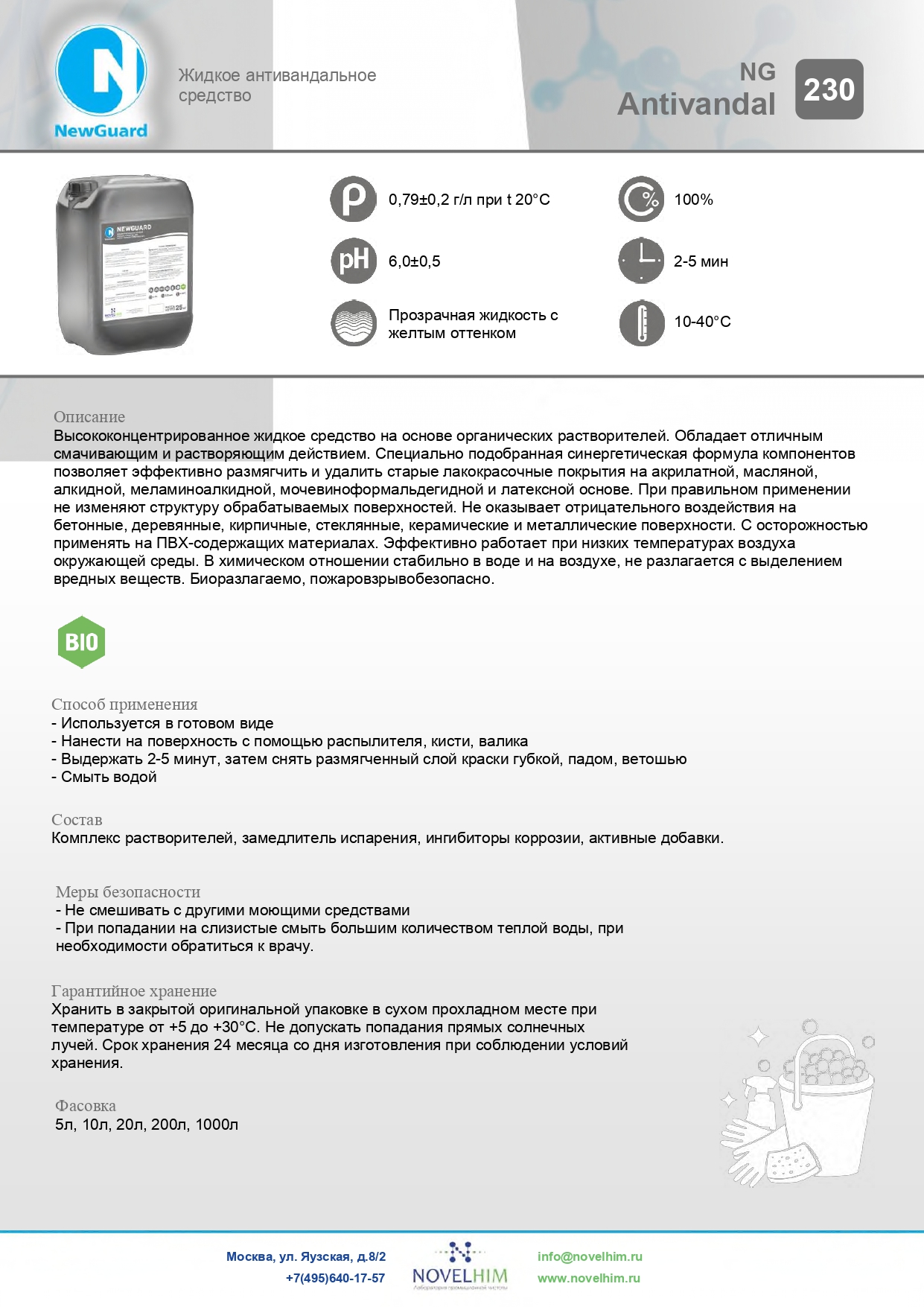 230 NG Antivandal Жидкое антивандальное средство. Канистра 20л.