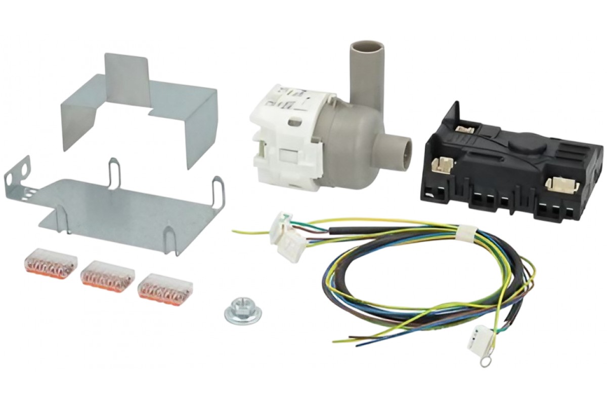 В комплект входят насос для очистки, плата управления с корпусом, кабель, проставка циркуляционного насоса, держатель электроники циркуляционного насоса и другие компоненты.
