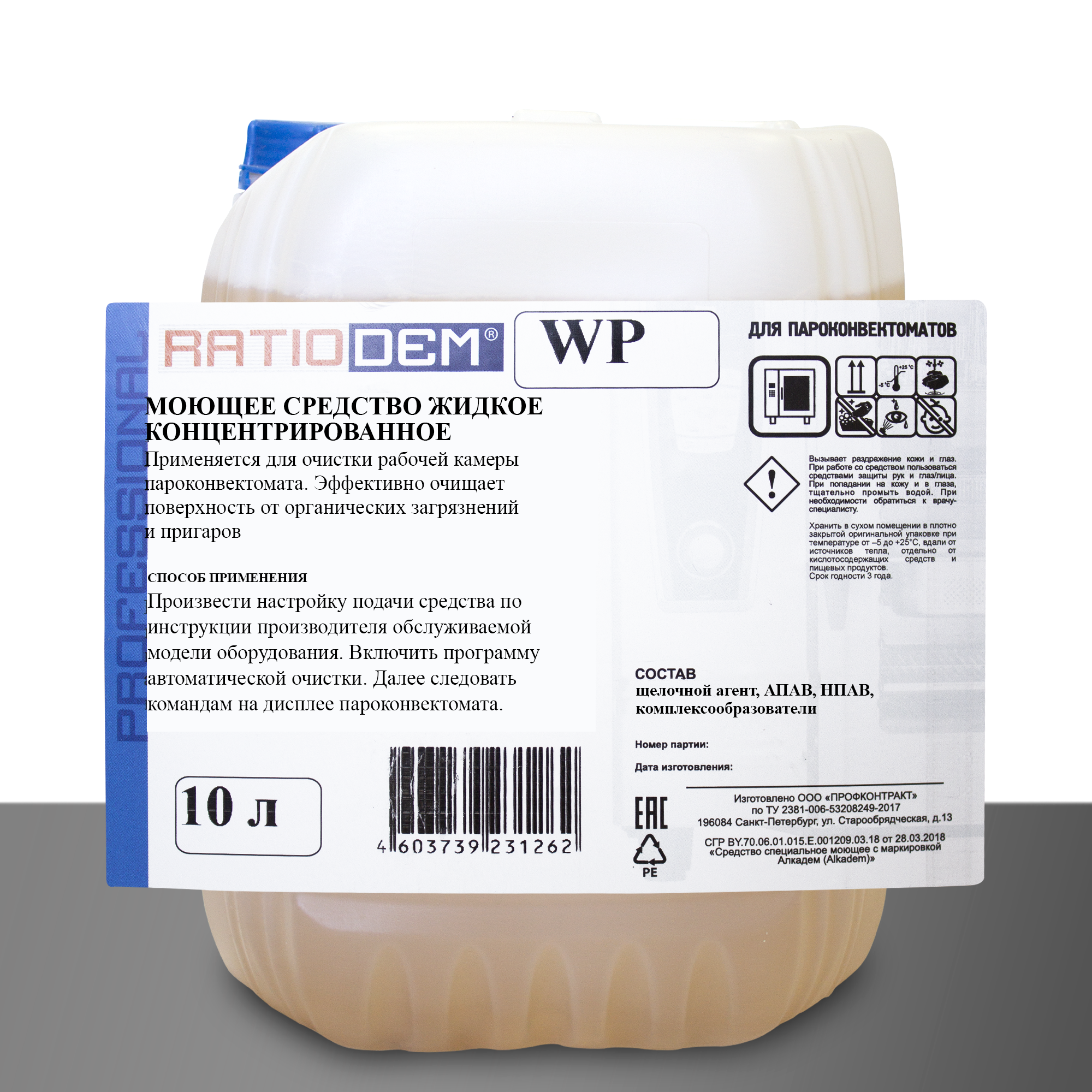 моющее средство для пароконвектоматов, RatioDem WP, средство для мойки пароконвектомата, профессиональная химия для пароконвектоматов, жидкое моющее средство для пароконвектомата, средство для автоматической мойки пароконвектомата, моющее средство 10 литров, химия для HoReCa.